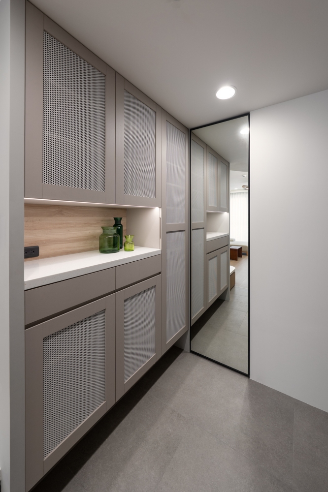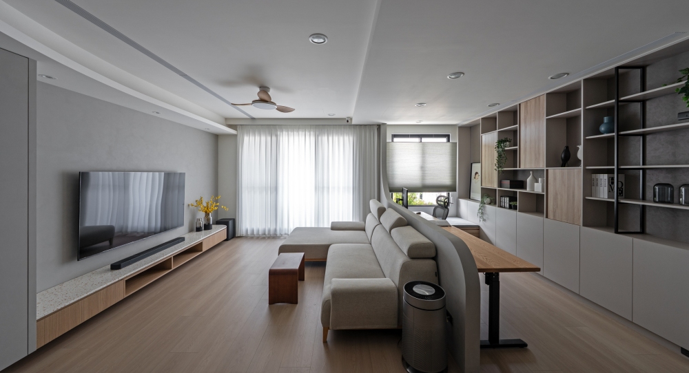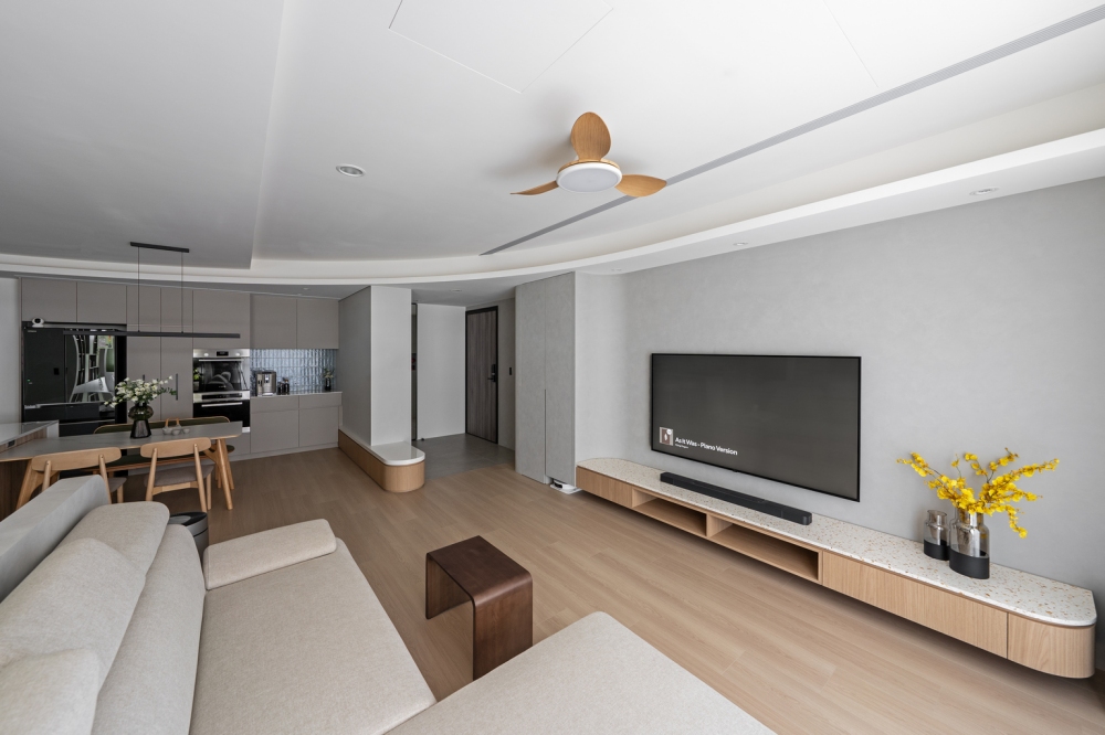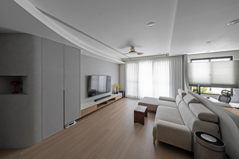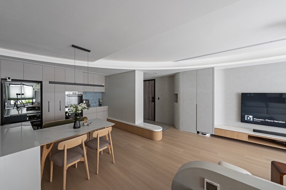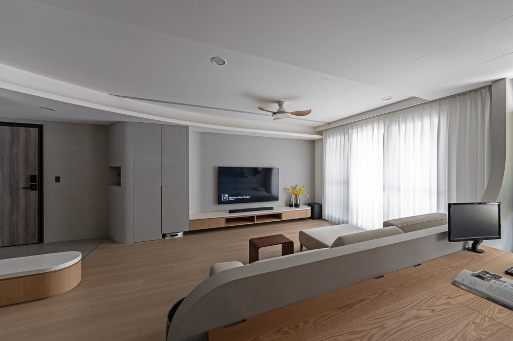 設計最終呈現出一種「靜中帶動」的平衡關係——公共空間開放流暢而富互動性,私領域則沉穩安定;在柔灰與淺木的共鳴之間,形成溫潤而具有現代秩序的生活風景。